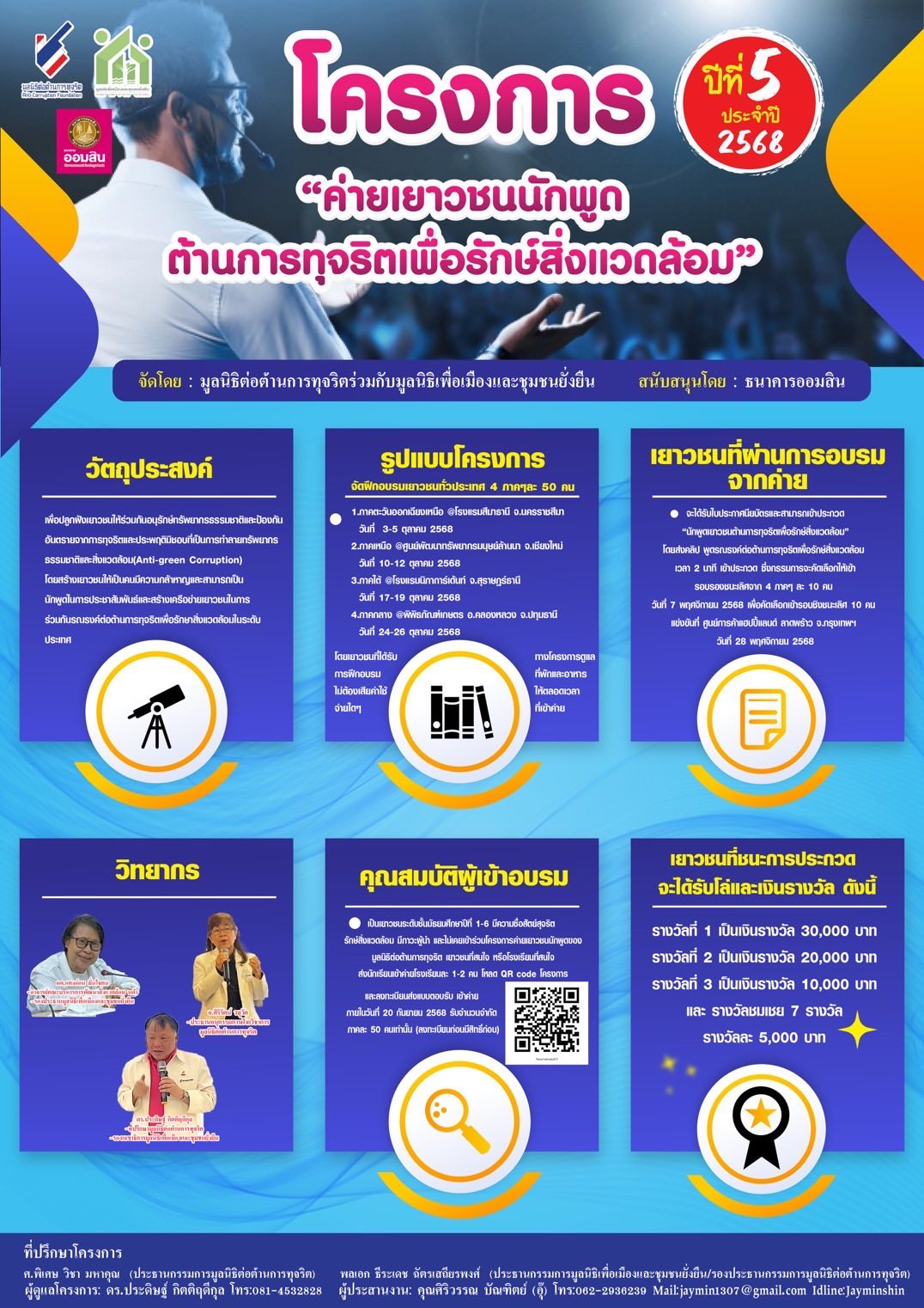 เรื่อง : ประชาสัมพันธ์โครงการค่ายฝึกอบรม “เยาวชนนักพูดต้านการทุจริตเพื่อรักษ์สิ่งแวดล้อม” [ |