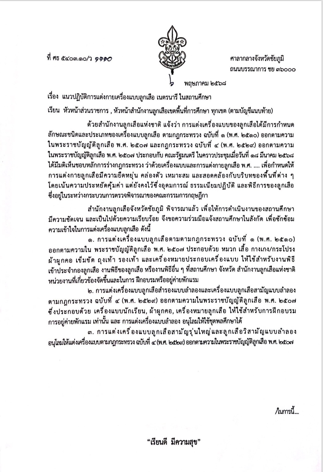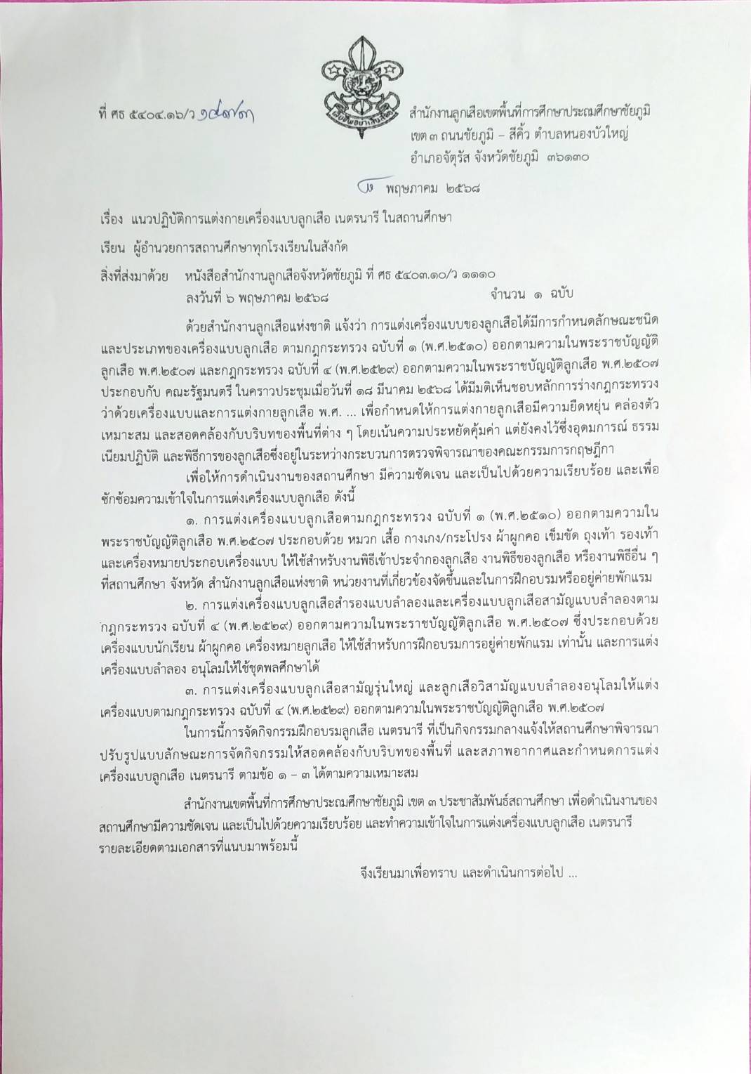 เรื่อง : แนวปฏิบัติการแต่งกายเครื่องแบบลูกเสือ เนตรนารี ในสถานศึกษา [ |