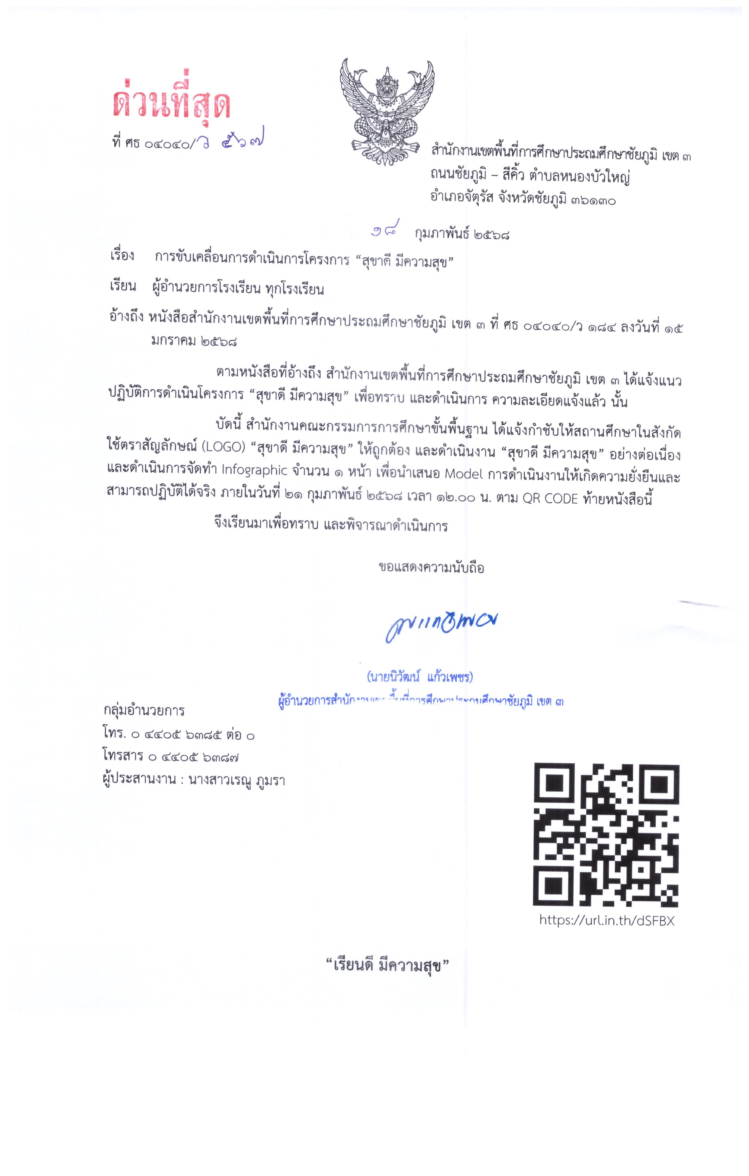 เรื่อง : การขับเคลื่อนการดำเนินการโครงการ "สุขาดี มีความสุข" [ |