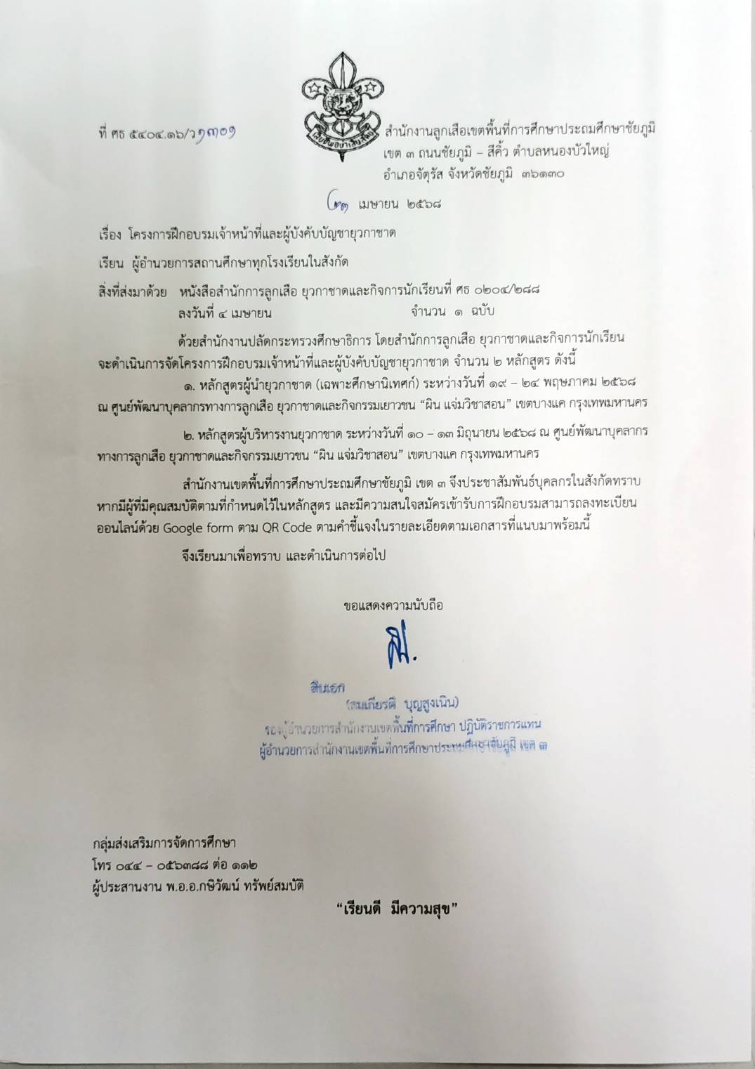 เรื่อง : โครงการฝึกอบรมเจ้าหน้าที่และผู้บังคับบัญชายุวกาชาด [ |